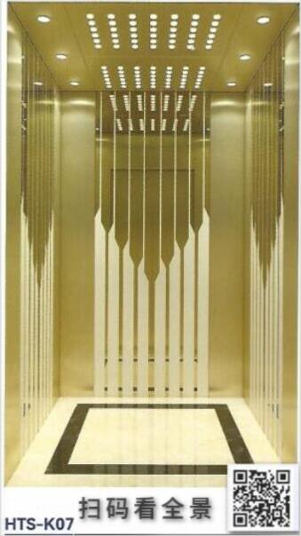 轎壁:三面中間鈦金鏡面蝕刻不銹鋼,其余鈦金發(fā)紋不銹鋼